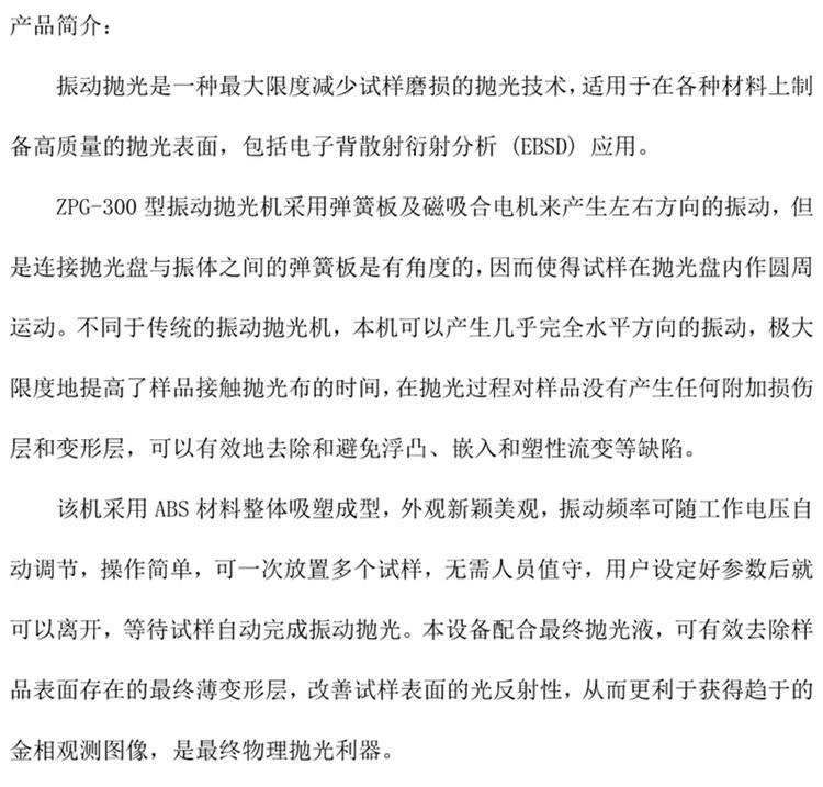 中特ZPG-300振动抛光机用于在各种材料上制备高质量的抛光表面